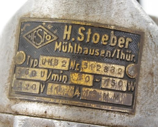 Stoeber annoncierte im Mühlhauser Adressbuch von 1949 als Reparaturwerkstatt für Elektromotore, im Fernsprechbuch des Kreises Mühlhausen von 1965 inserierte er nur unter Stoeber, Heinz, Elektromaschinenbau. In dieser Zeitspanne wurden die elektrischen Handbohrmaschinen hergestellt.