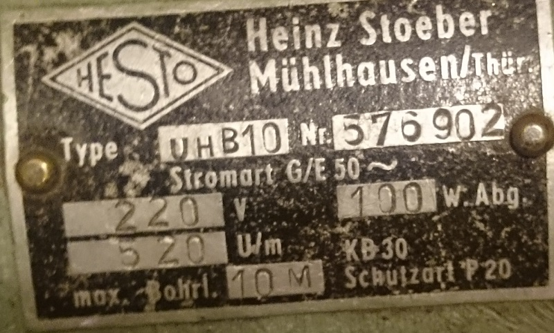 Abb.9: Bohrmaschine HESTO Typ UHB von 1950 |